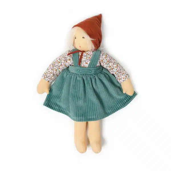 Il suo vestitino verde e la camicia floreale artigianale sono un tributo alla natura e alla bellezza dei dettagli fatti a mano. Perfetta per un pomeriggio di gioco nel parco o per un’avventura nel mondo della fantasia, Lotte porta con sé un’aria di freschezza e leggerezza.