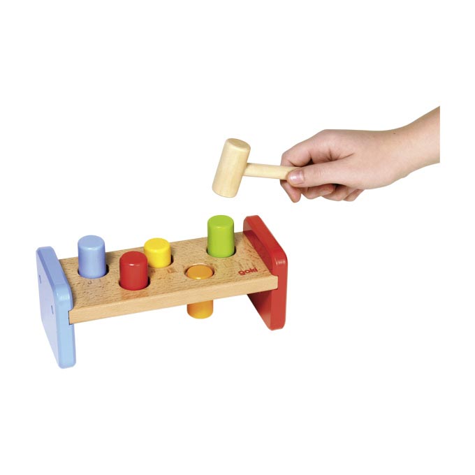 Un tavolino con dei piolini da colpire con il martello