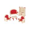 Set di mobili in legno che compongono la cucina della casa delle bambole.