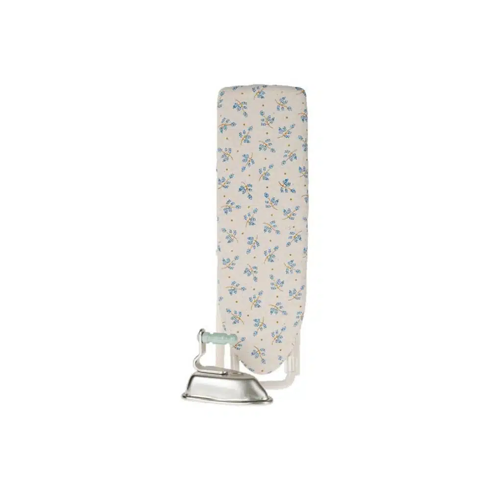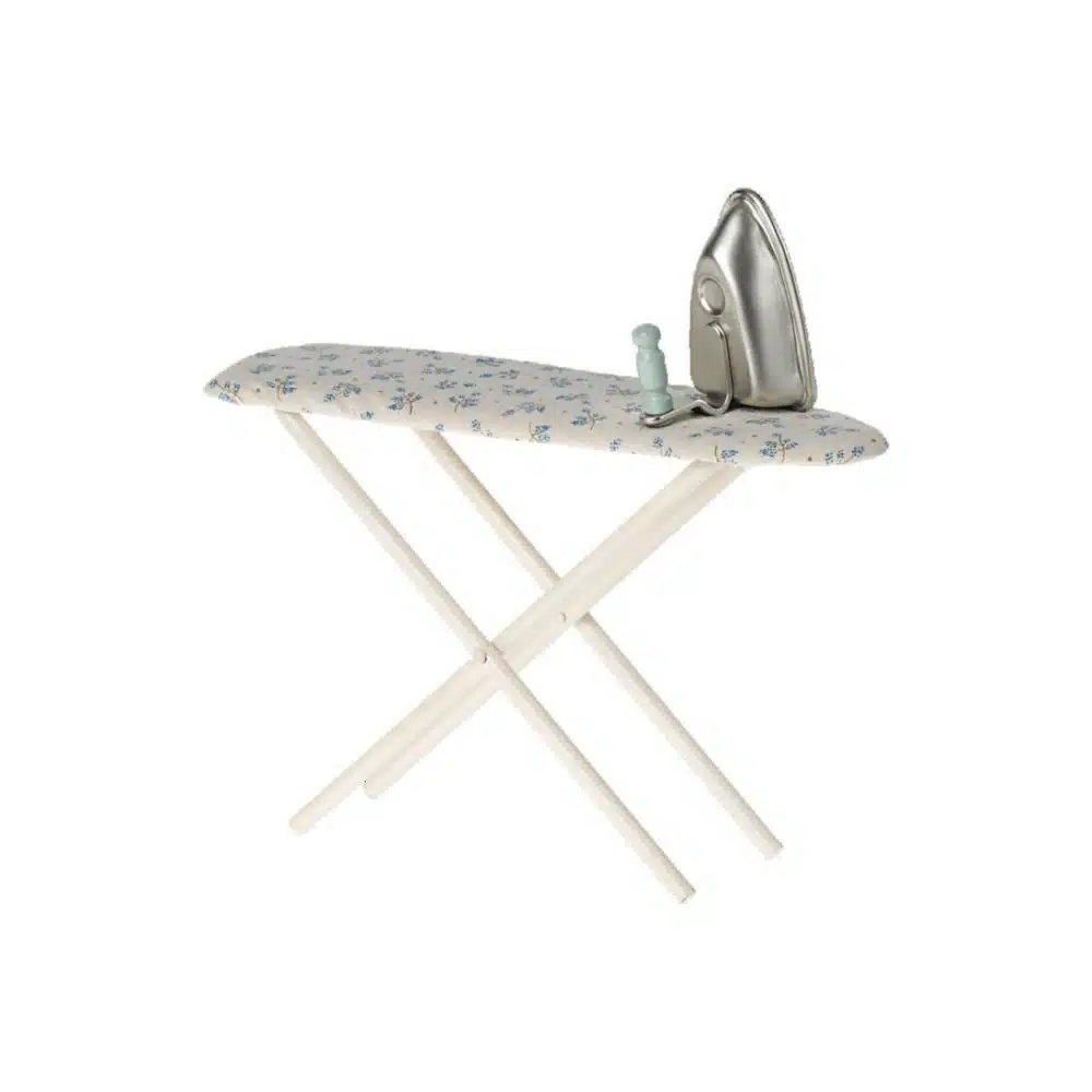 Un asse con il suo ferro in metallo per stirare i vestiti dei topini e dei coniglietti.