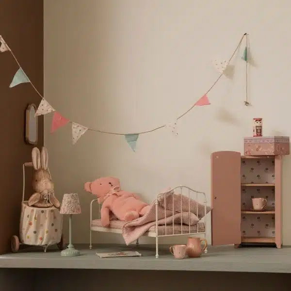 La Lanterna da terra vintage menta Maileg è un accessorio indispensabile per aggiungere un tocco di luce e atmosfera alla casa delle bambole.