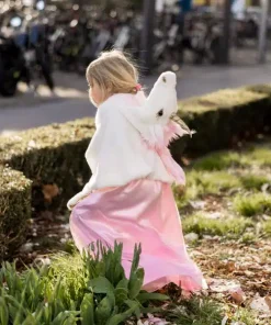 Realizzato in morbida pelliccia sintetica, questo mantello presenta una criniera rosa e un corno dorato per trasformare ogni bambina in un unicorno incantato.