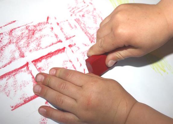 I mattoncini di cera hanno eccezionali proprietà di disegno. Si possono usare sia dalla parte dei lati, per colorare superfici ampie, sia dallo spigolo, per fare dei dettagli.