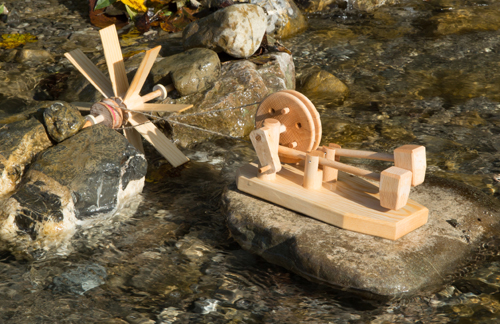 Il meccanismo a martello batte e martella in ritmi diversi. Può essere alimentato da una ruota idraulica o da una turbina come i grandi modelli dei vecchi fabbri. I perni di guida possono essere cambiati in modo che ogni martello possa essere sollevato più volte per turno. Materiali diversi come base danno come risultato diversi suoni.