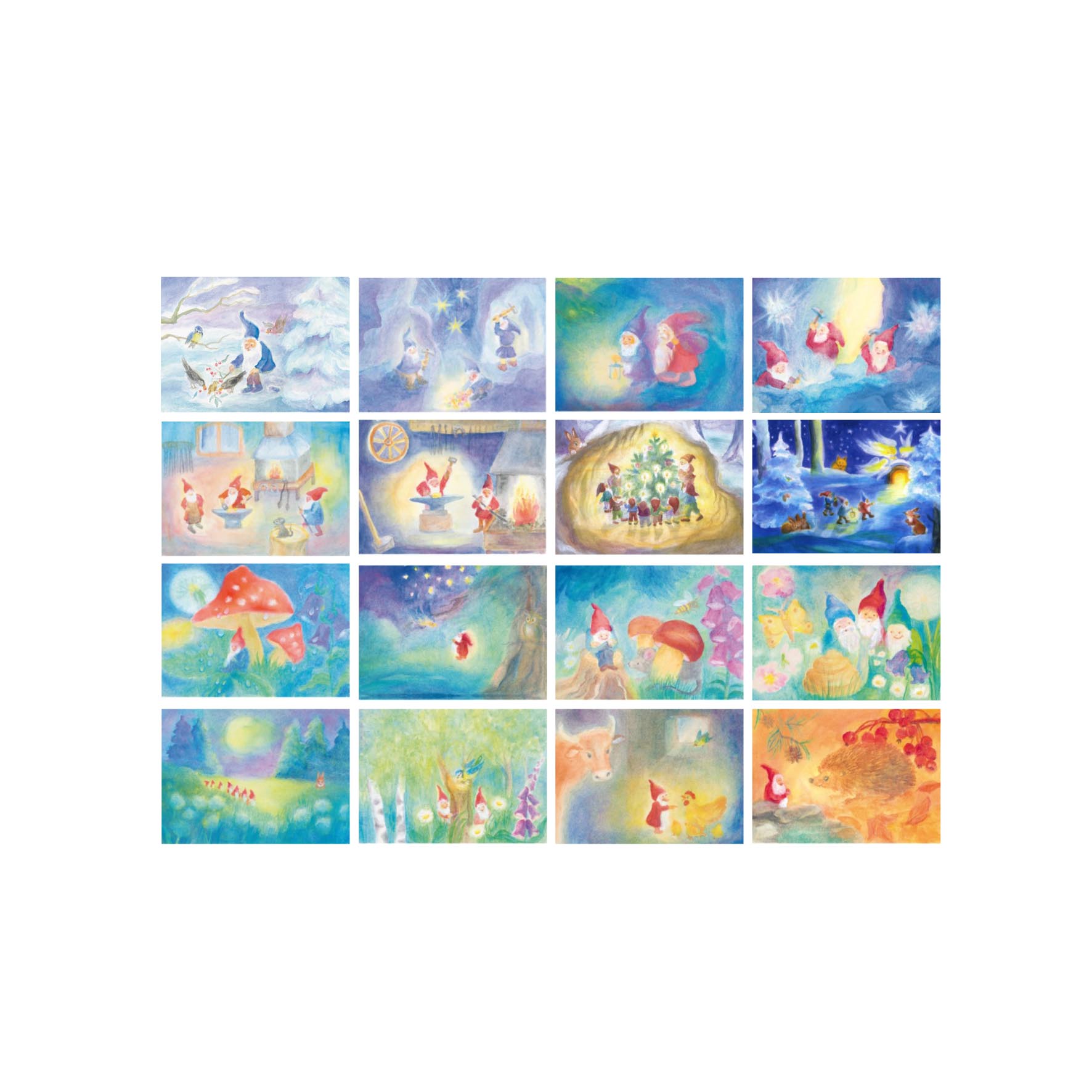 Serie 16 cartoline Natale dei nani