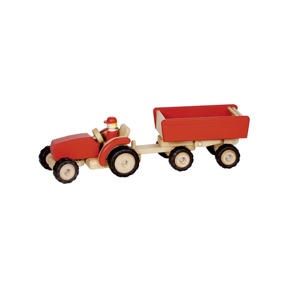 Trattore rosso in legno della Goki.