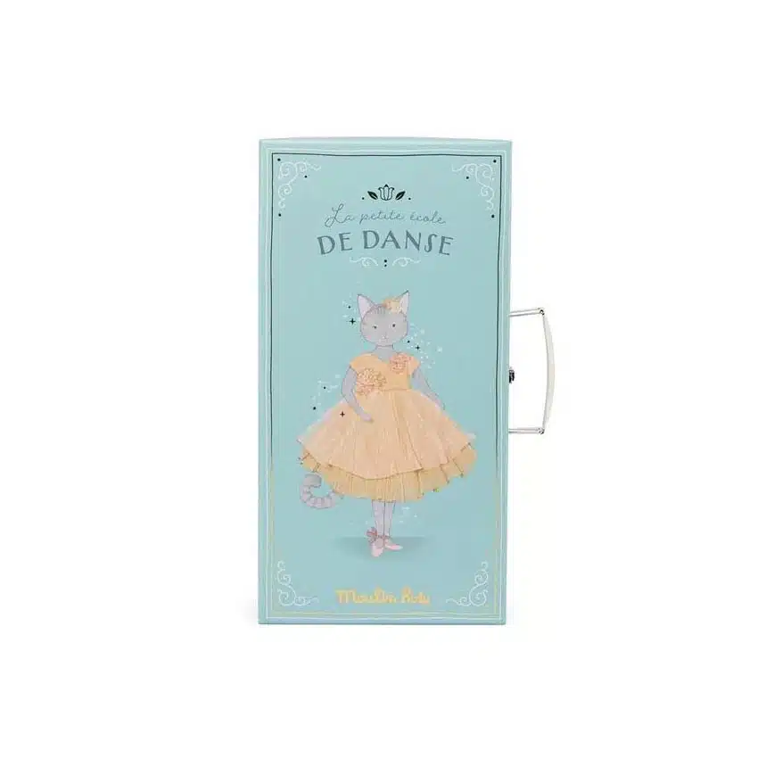 Una valigetta guardaroba con specchio integrato che include il peluche di Célestine e due vestiti per lei: uno per le prove in sala danza e uno da mettere sul palcoscenico.