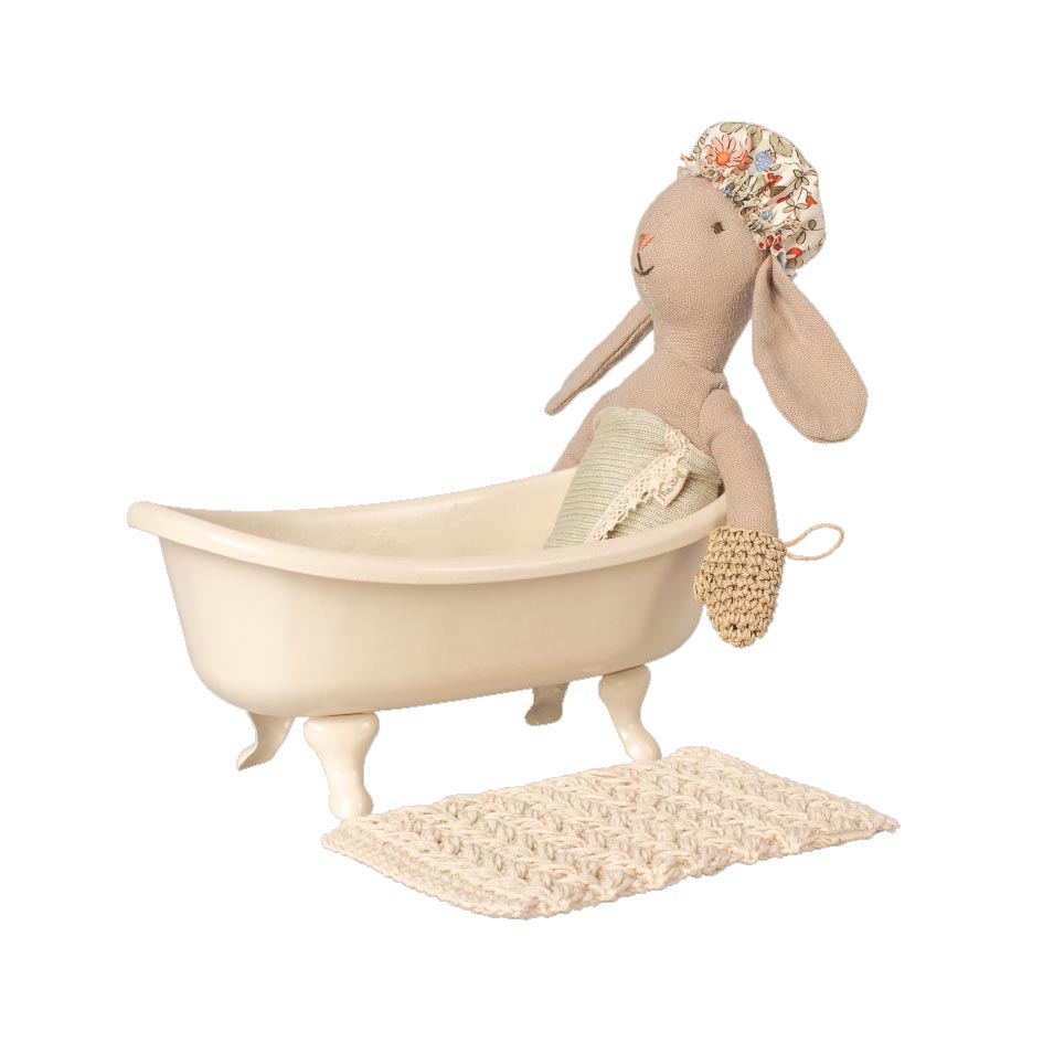 Una vasca da bagno in metallo per far rilassare i topini e i coniglietti.