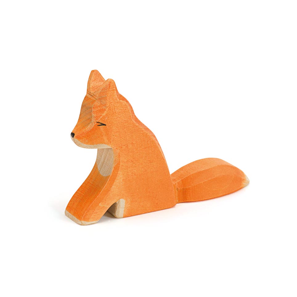 Volpe seduta in legno rifinito e dipinto a mano della serie Ostheimer.